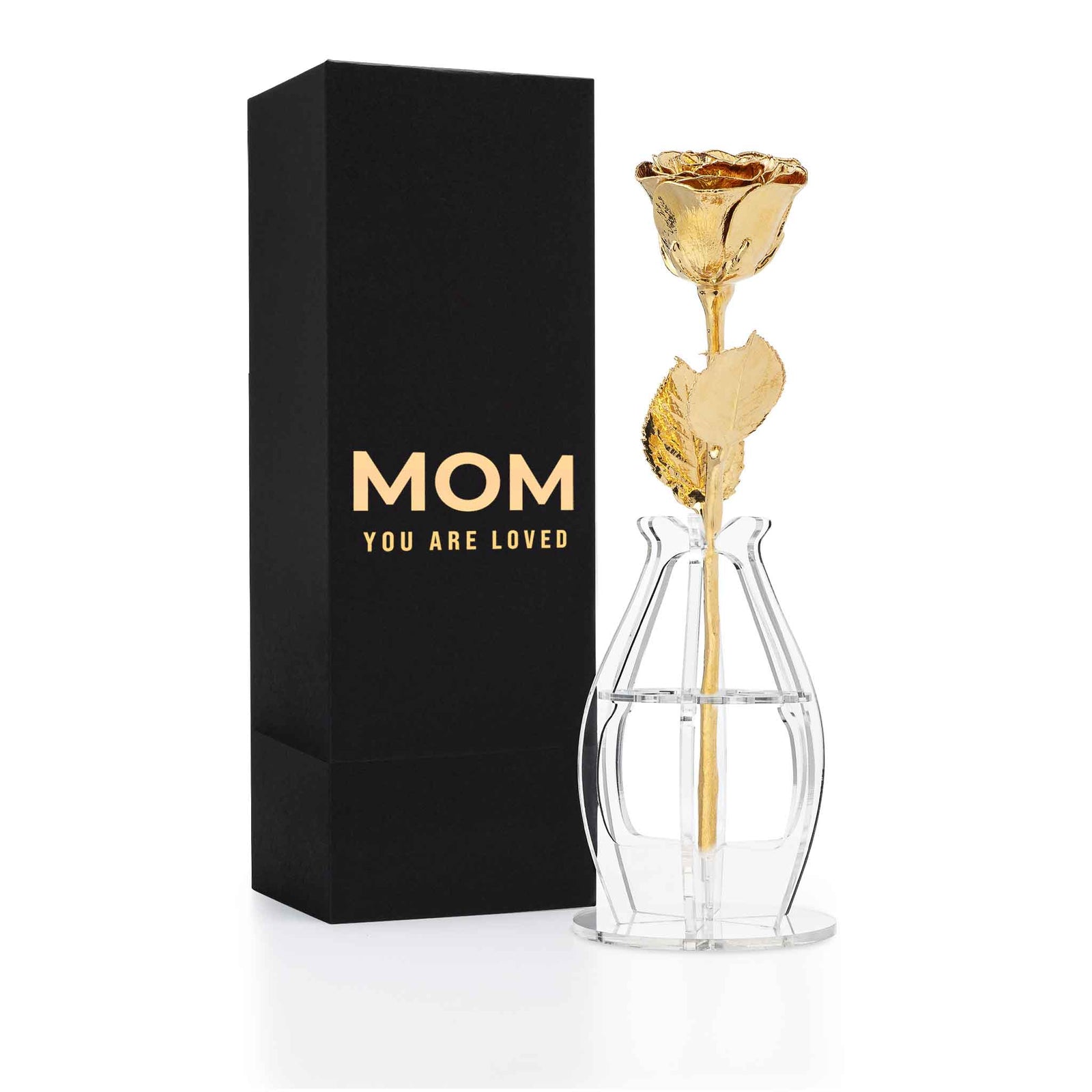 "Mom You Are Loved" Personalized High Detail 24K Gold Forever Rose Combo with Bloom Box & Phantom Vase™ Combo