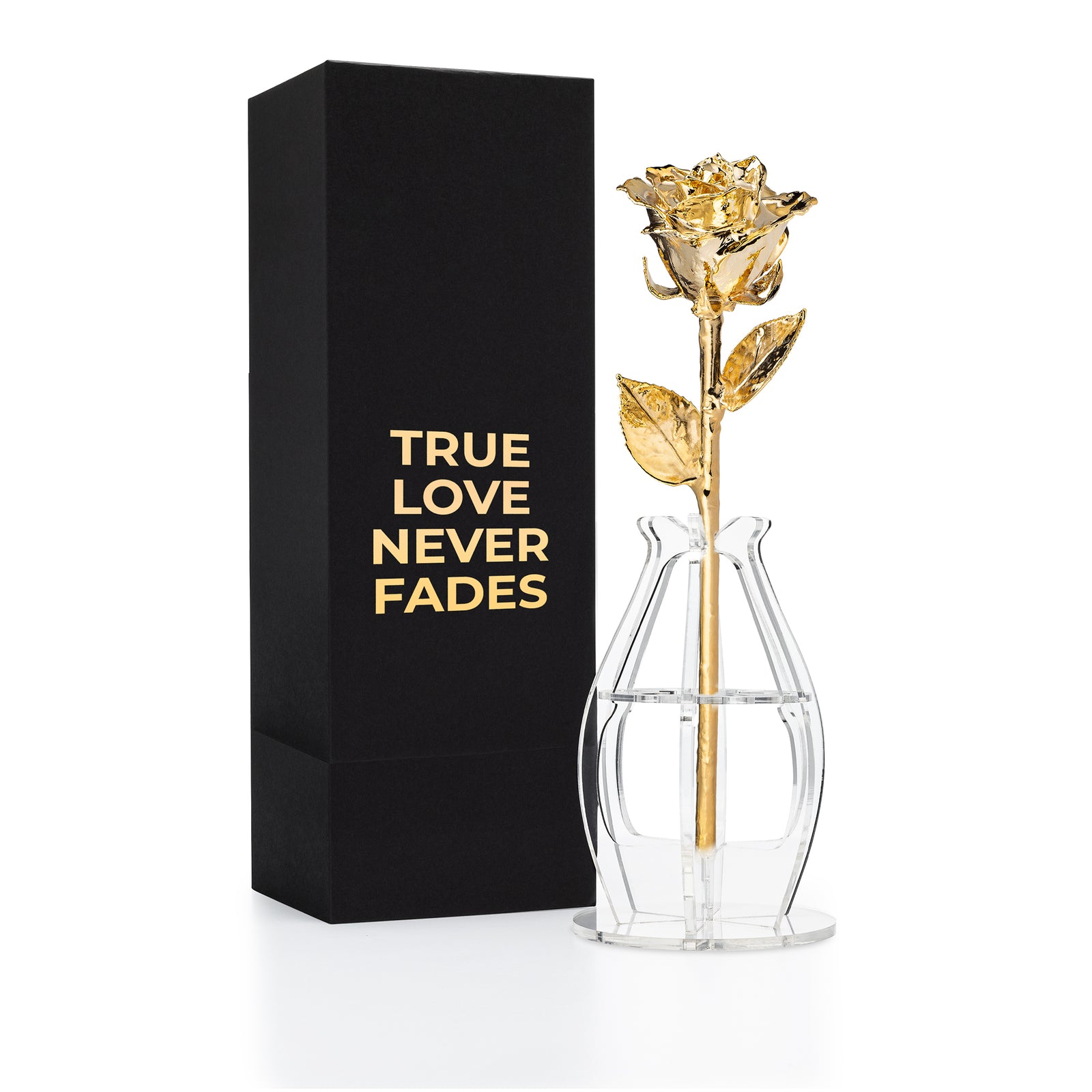 "True Love Never Fades" Personalized 24K Gold Forever Rose Combo with Bloom Box & Phantom Vase™ Combo