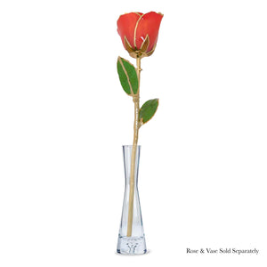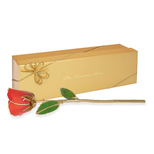 Meet Coral Kiss — a Forever Rose infused with warmth, radiance, and irresistible charm. Its glowing coral petals blend soft blush tones with sun-lit warmth, like golden hour captured in bloom. Finished with 24K gold-trimmed edges, each petal shimmers with a glow that feels both playful and deeply romantic.