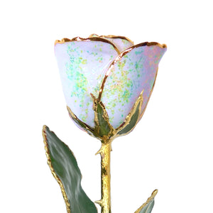 Our Opal Birthstone Forever Rose is one of the most amazing gold trimmed roses we've made to date. Opal is often referred to as the "queen of gems" because it glitters with the color of all different stones. Such was the inspiration for our Opal Forever Rose, a rose that sparkled in every color! It also reminds us of a kaleidoscope, which makes it a great fit for someone with many different sides or sending the message of new and different perspectives.