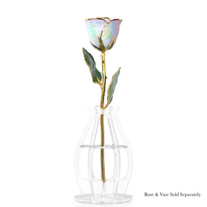 Our newly redesigned Opal Sparkle Rose now features a soft milky-white lacquer shell kissed with pastel hues of lavender and mint, creating a more natural, gemstone-like iridescence than the original glitter finish. Enhanced with a finer opalescent shimmer and 24K gold trim, it beautifully captures the shifting light and dreamy depth of a true October birthstone.