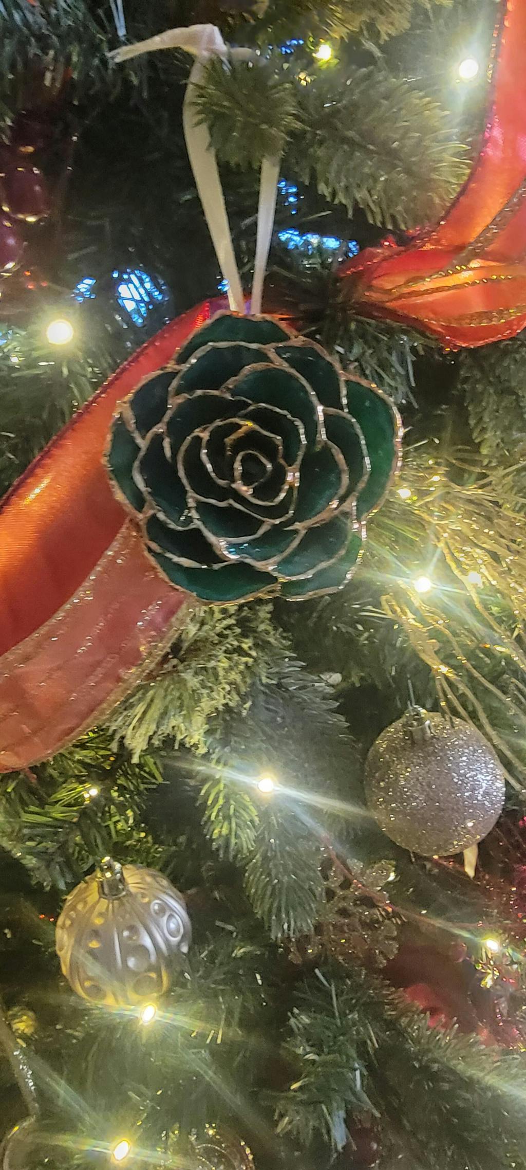 Forever Rose Ornament - 24K Gold Trim Majestic Bloom