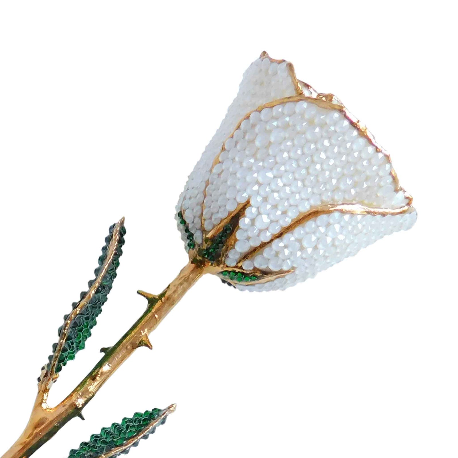 Custom 24K Gold Trim Electric White Forever Rose with Austrian Crystals Solid Colors (Ready to Ship)