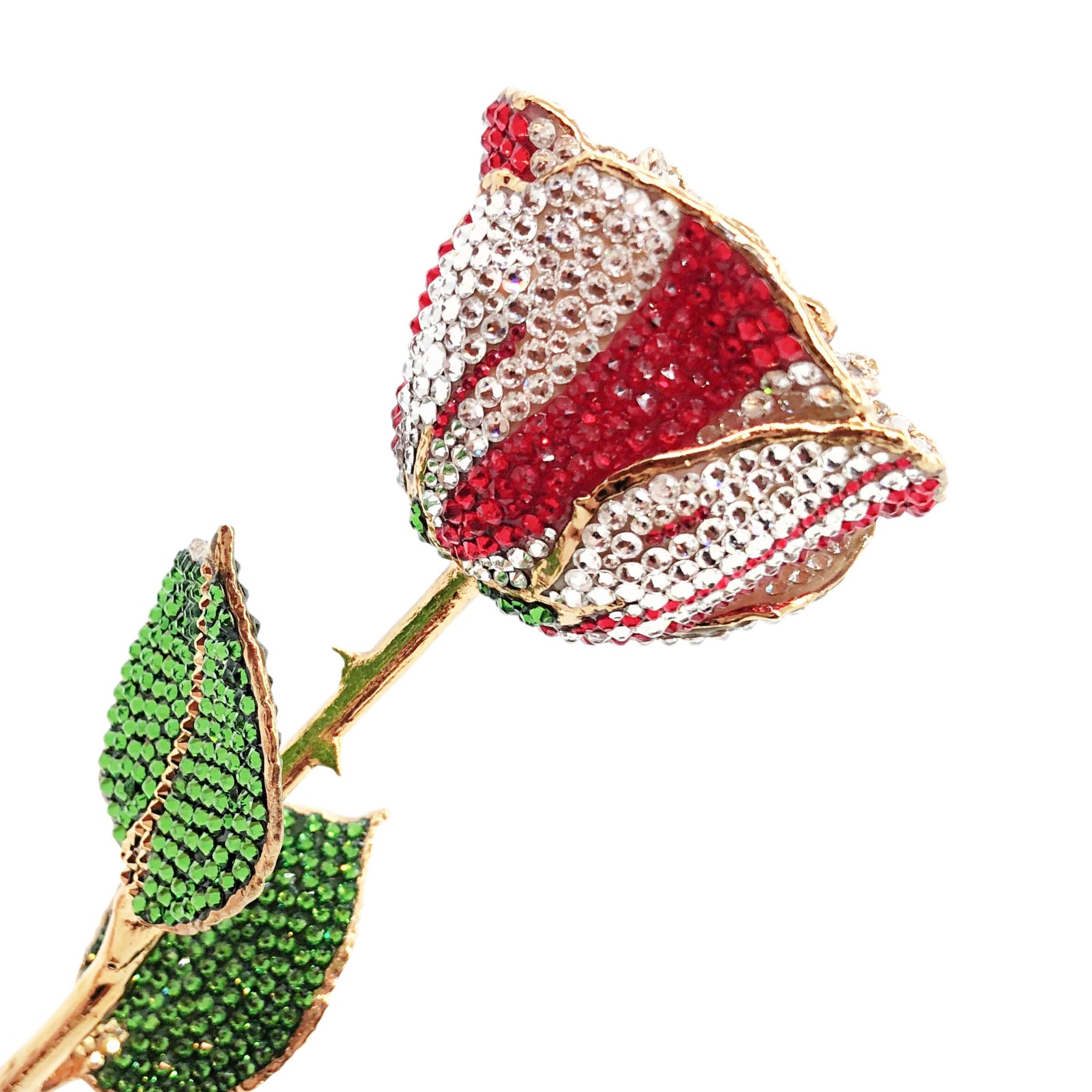 Custom 24K Gold Trim Peppermint Forever Rose with Austrian Crystals Multi Colors(Made to Order / 14 Day Production)