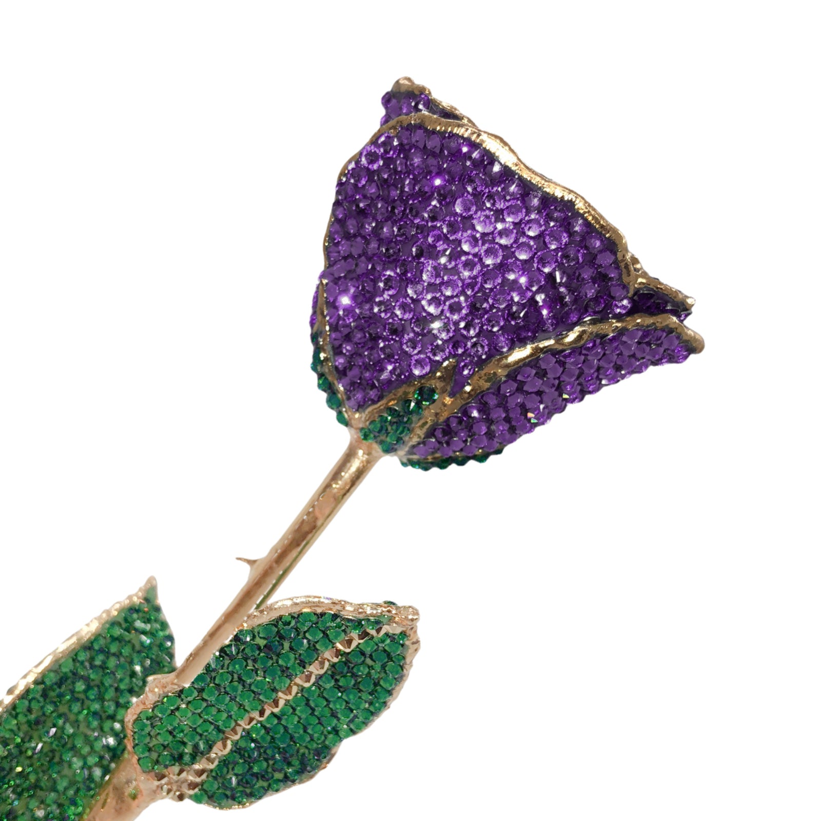 Custom 24K Gold Trim Purple Forever Rose with Austrian Crystals Solid Colors(Made to Order / 14 Day Production)