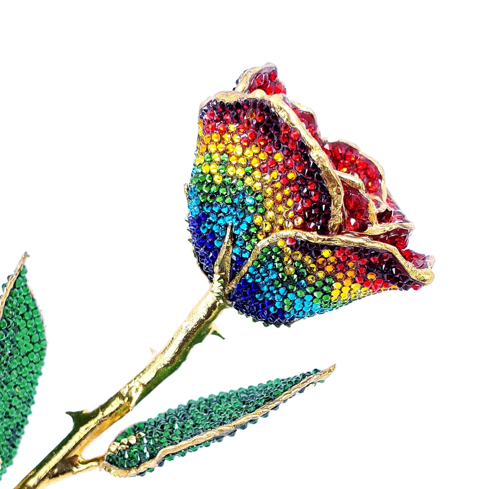 Custom 24K Gold Trim Rainbow Forever Rose with Austrian Crystals Multi Colors(Made to Order / 14 Day Production)