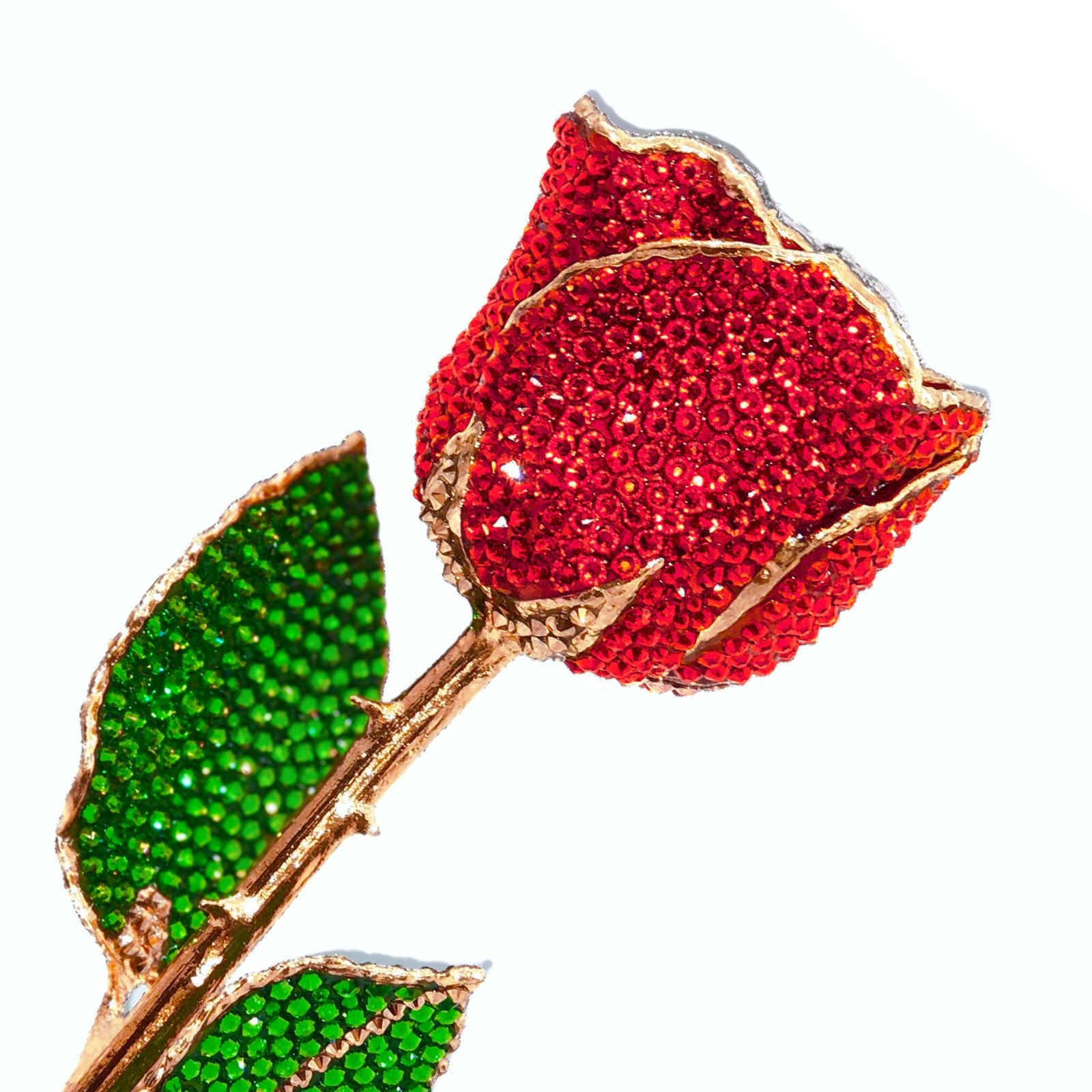 Each Custom Forever Rose with Austrian Crystals is made to order in your choice of rose. The adornment process is painstakingly done by hand and features a level of detail that has to be seen to be believed.