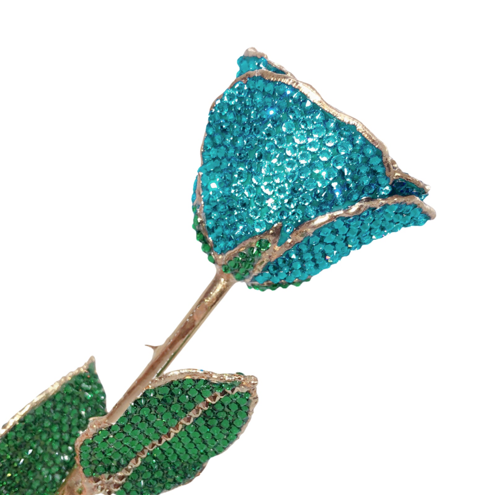 Custom 24K Gold Trim Aquamarine Sparkle (March Birthstone) Forever Rose with Austrian Crystals Solid Colors(Made to Order / 14 Day Production)