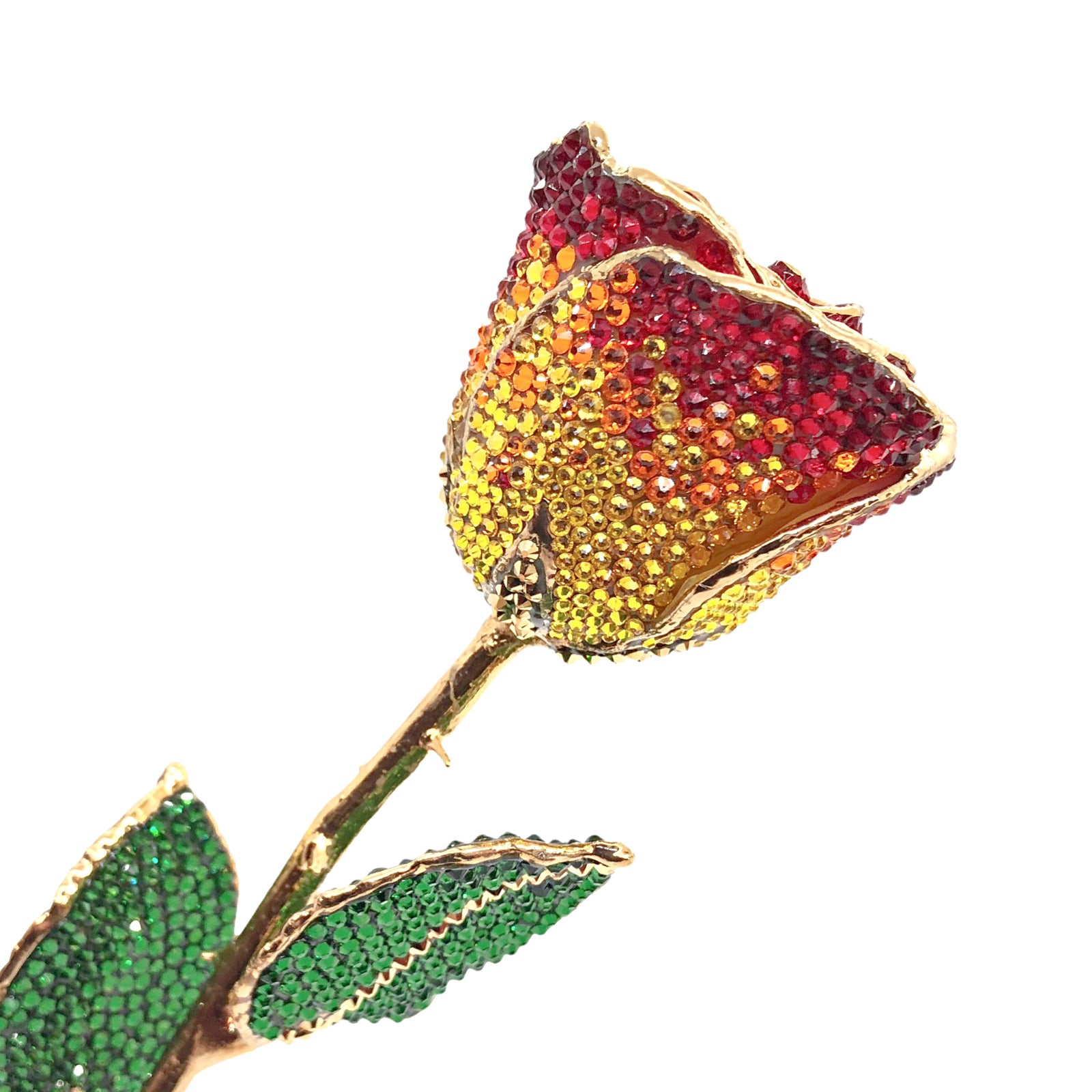 Custom 24K Gold Trim Yellow to Red Forever Rose with Austrian Crystals Multi Colors(Made to Order / 14 Day Production)