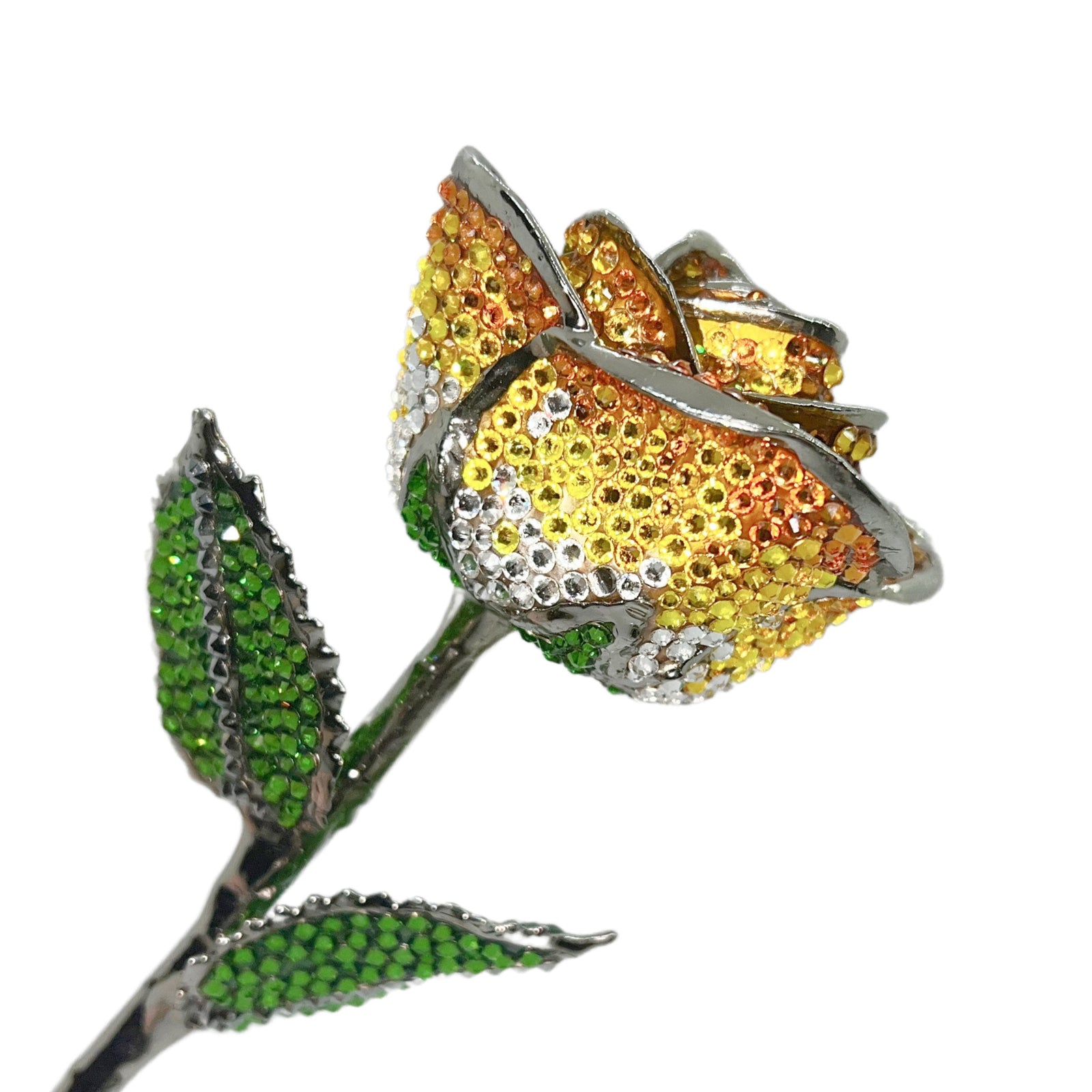 Custom Platinum Trim Sunny Day Forever Rose with Austrian Crystals Solid Colors(Made to Order / 14 Day Production)