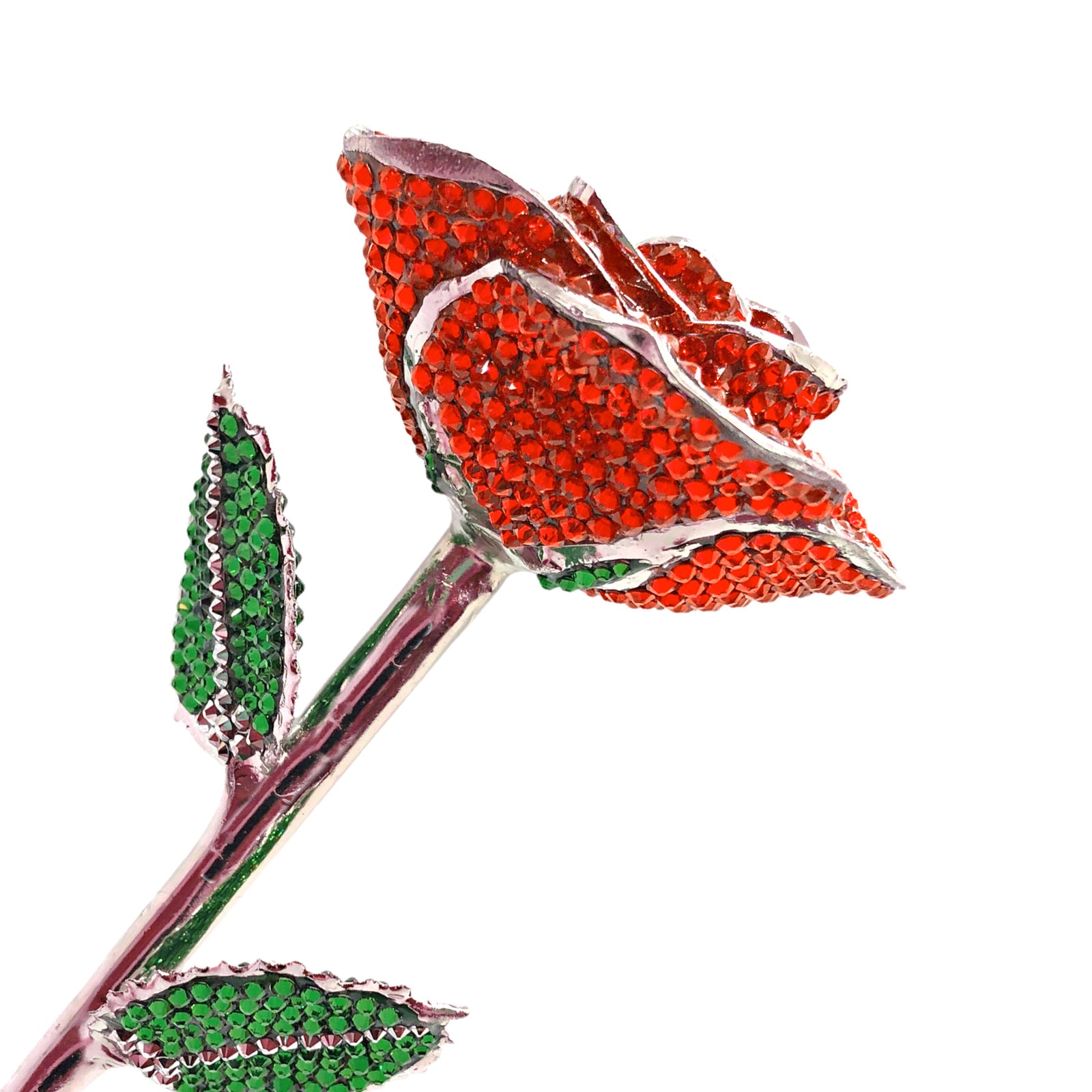 Custom Platinum Trim Red Sparkle Forever Rose with Austrian Crystals Solid Colors(Made to Order / 14 Day Production)