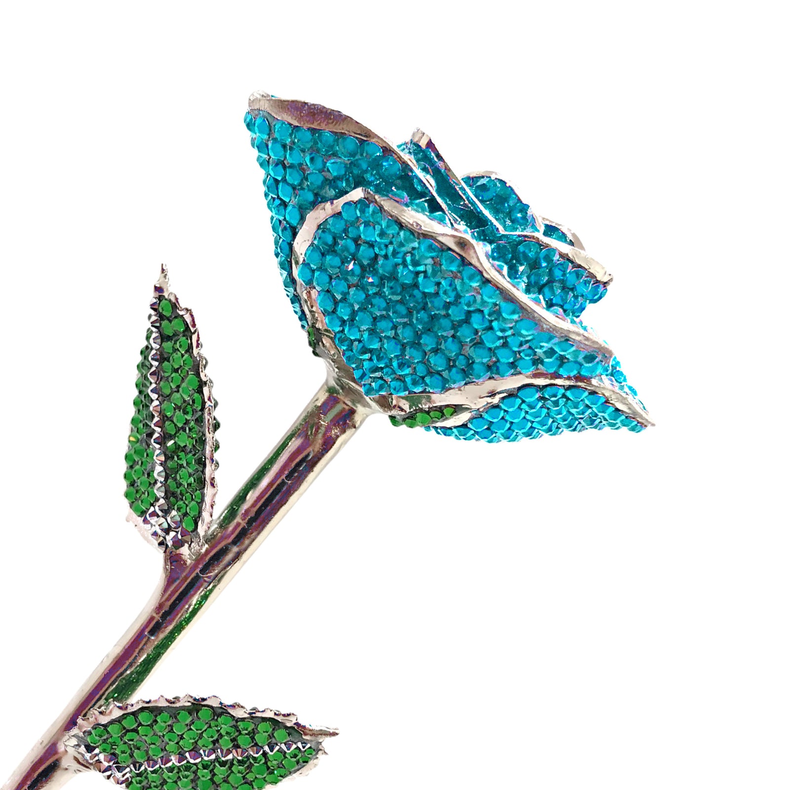 Custom Platinum Trim Blue Forever Rose with Austrian Crystals Solid Colors(Made to Order / 14 Day Production)