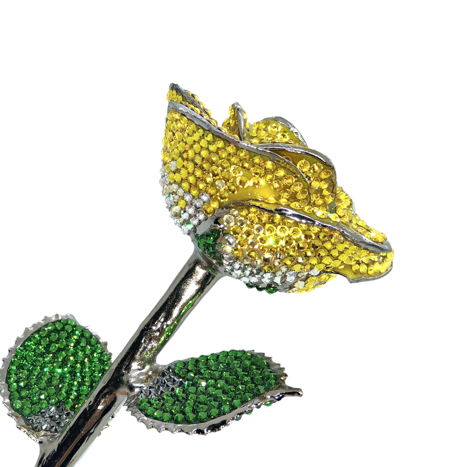 Custom Platinum Trim Yellow Forever Rose with Austrian Crystals Solid Colors(Made to Order / 14 Day Production)