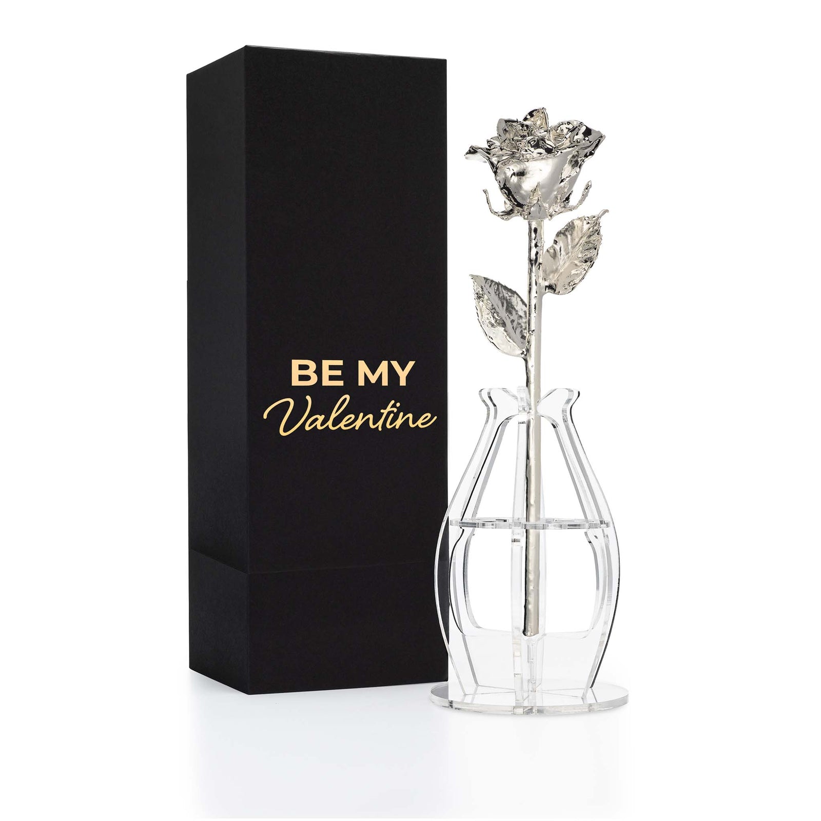 "Be My Valentine" Personalized Silver Forever Rose Combo with Bloom Box & Phantom Vase™ Combo