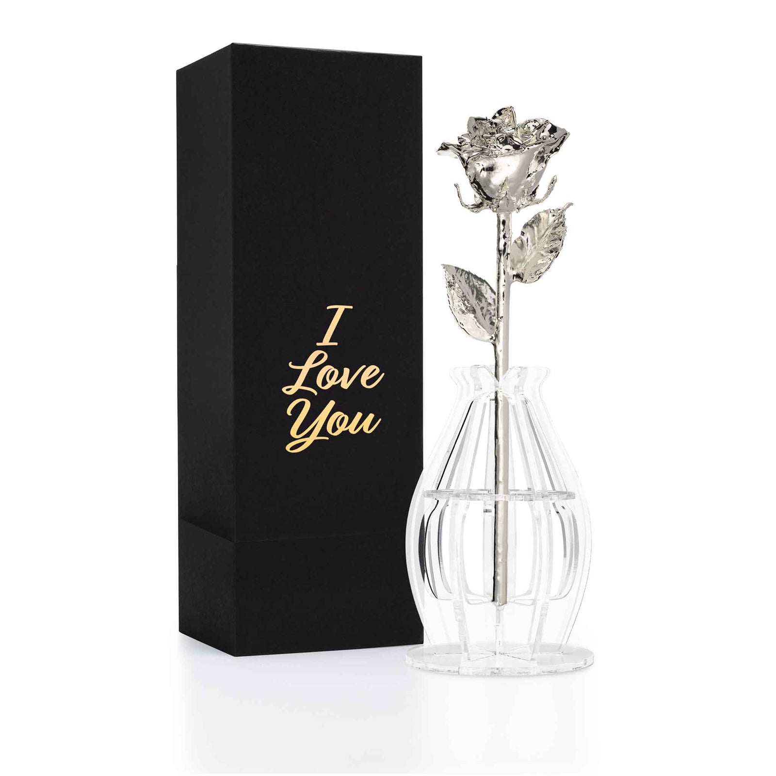 "I Love You" Personalized Silver Forever Rose Combo with Bloom Box & Phantom Vase™ Combo