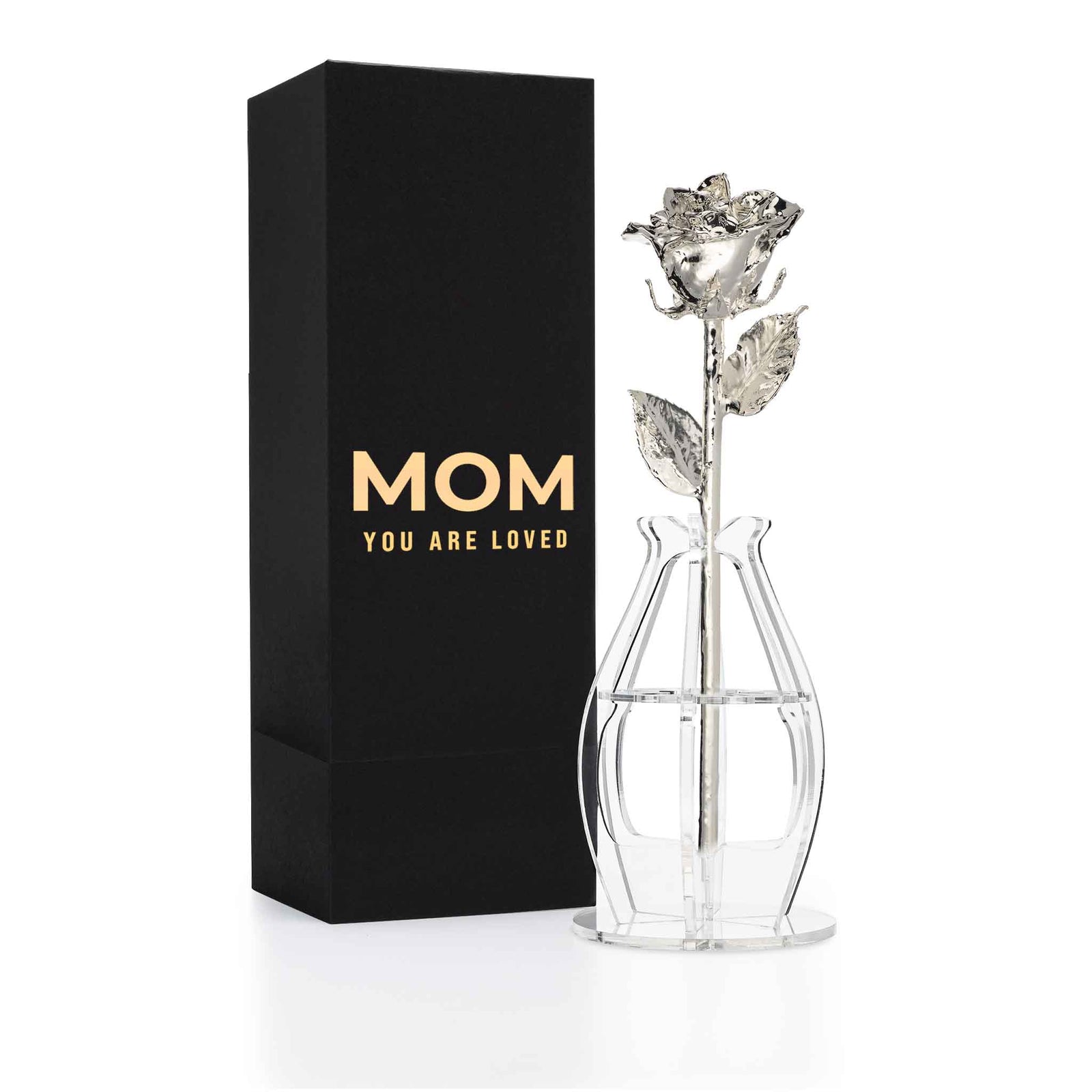 "Mom You Are Loved" Personalized Silver Forever Rose Combo with Bloom Box & Phantom Vase™ Combo