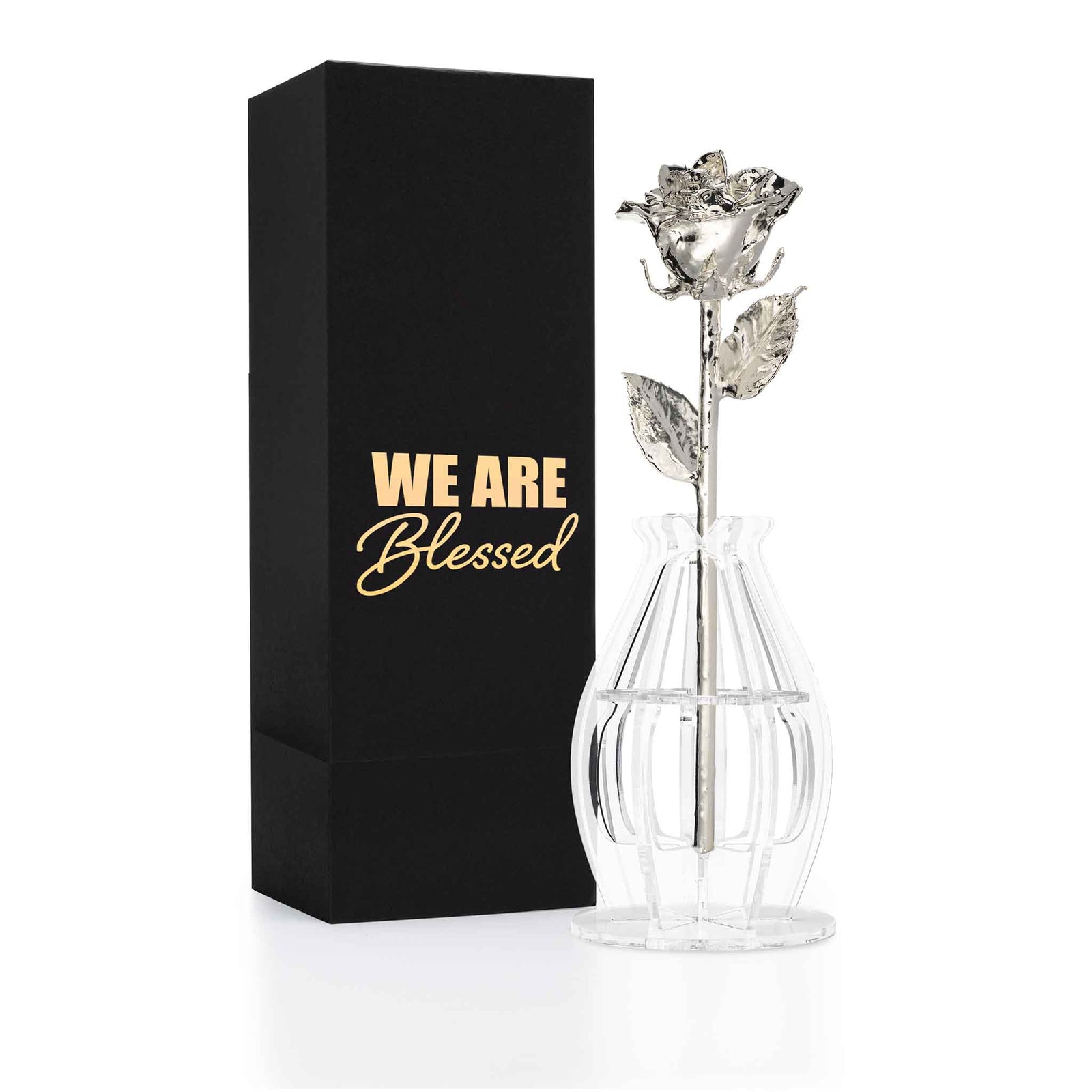 "We are Blessed" Personalized Silver Forever Rose Combo with Bloom Box & Phantom Vase™ Combo
