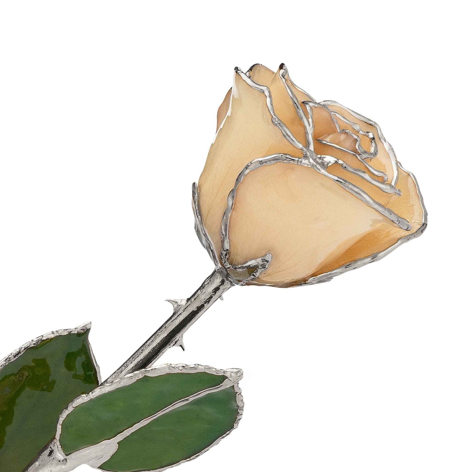 · A real rose carefully selected for quality and shape, then sized and preserved in a durable lacquer shell at the peak of its beauty and plated in rich 24K Gold, Silver or Platinum for your lifetime pleasure and enjoyment.