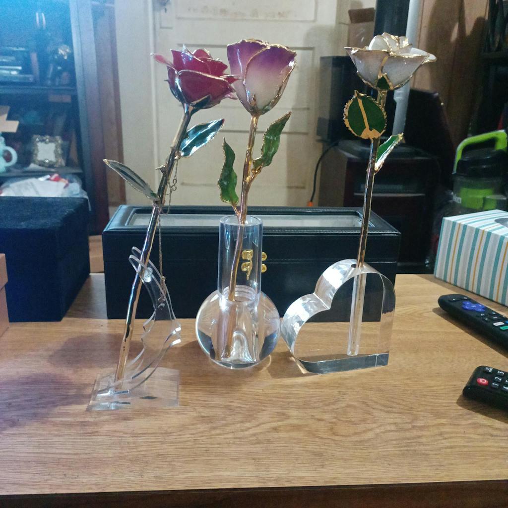 "I just received my two forever roses and vase, it was my mothers birthday and i wanted to get her something that would just send "I love you" right through. She started crying as she saw how beautiful they were, they were perfect. I made a homemade card to go along with it right before she opened the perfectly wrapped gift box."