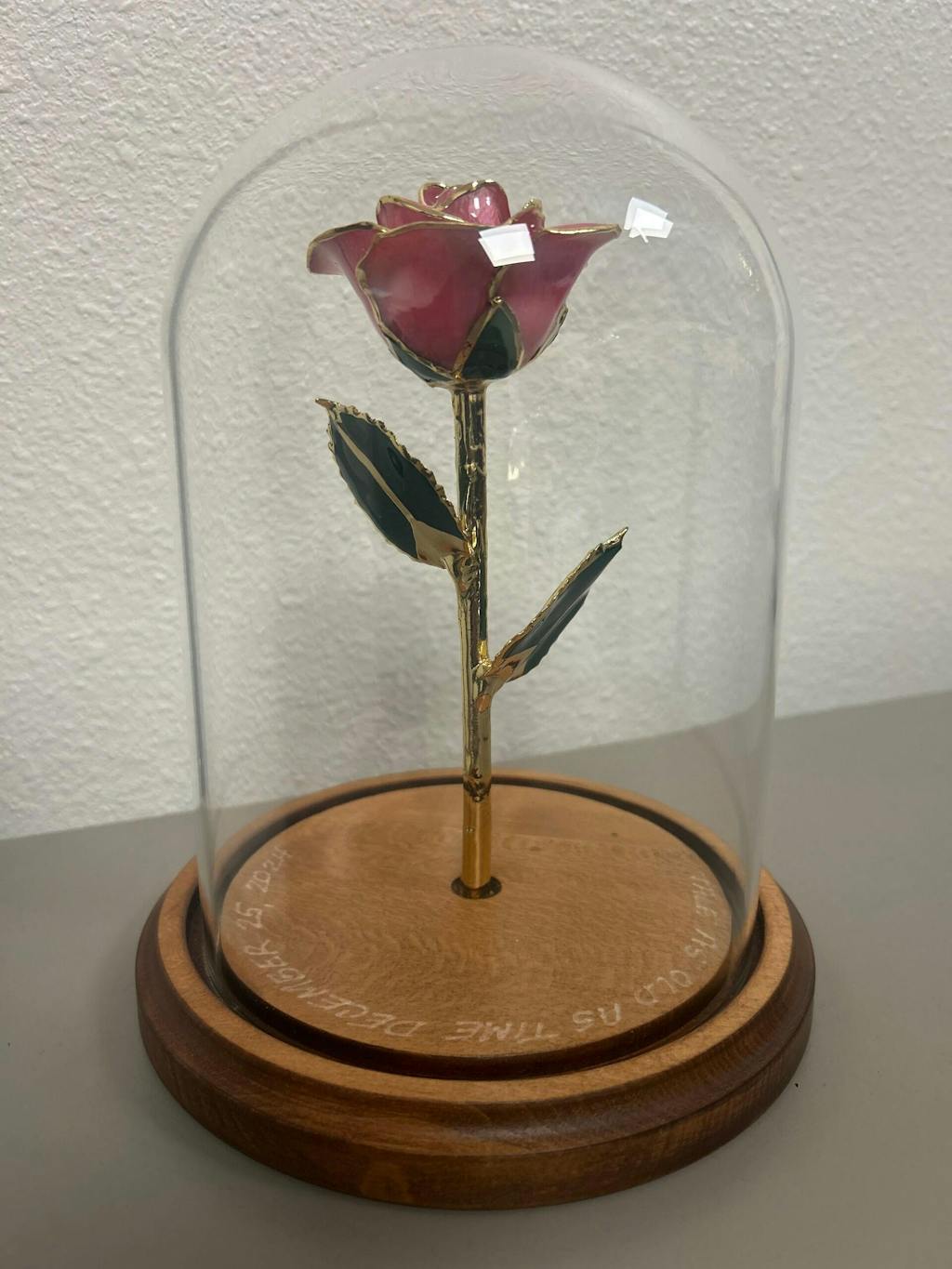 "I ordered a pink rose trimmed in 24k gold and engraved on the stem for my girlfriend. The ordering and customizing was very easy and simple. I ordered the next day air shipping for the rose because I wanted my girlfriend to have the rose before the weekend, and I had expected it to arrive on Friday. UPS had made a mistake shipping the rose and instead of one day air shipping, it turned into a four day shipping. Even though UPS had made a mistake, you contacted me and let me know you will do your best to get it delivered and definitely made the experience easier. Thank you very much for the smooth transaction and the refund I received for the shipping. By the way, she loved the rose, and I must say myself it is beautiful. Will shop with you again in the future!"