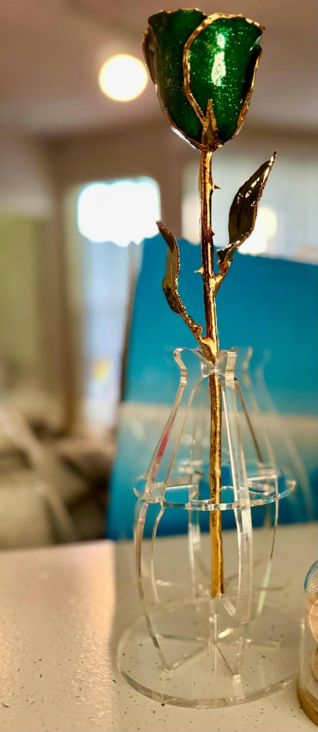 "What wonderful customer service! Over the phone I had mentioned I was thinking of purchasing a blue trimmed rose with a gold dipped rose. In the end, I ordered two dipped gold roses online. Would you believe they actually remembered my name and called to confirm my order since it had changed?!I had already thought they were very pleasant but the personal call put them over the top in customer service. They will definitely get more of my business. Thanks Forever Rose!"