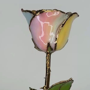Introducing The Hope Rose — a Forever Rose inspired by quiet strength, new beginnings, and the beauty that follows even the hardest seasons. Its delicate petals blend soft blush pink with gentle hints of blue and warm yellow and green, creating a serene, light rainbow gradient — like the sky just after the rain clears. Each petal is finished with radiant 24K gold edges, capturing light in a way that feels calm, comforting, and full of possibility.
