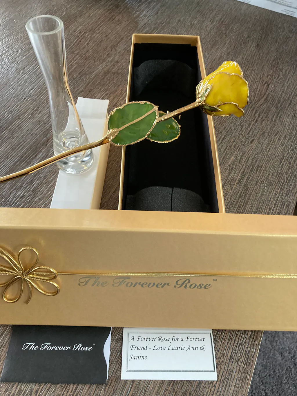 My mom took a turn for the worse and her best friend stayed at her house with my sister and I for a week unfortunately my mom passed and we wanted to give her something special. My moms favorite color was yellow and I came across the forever rose. Well her friend said it was more beautiful in person.